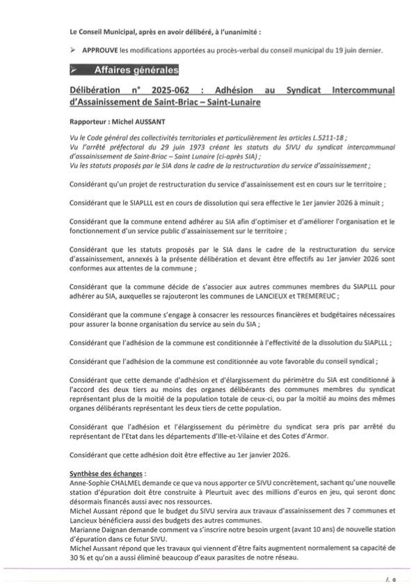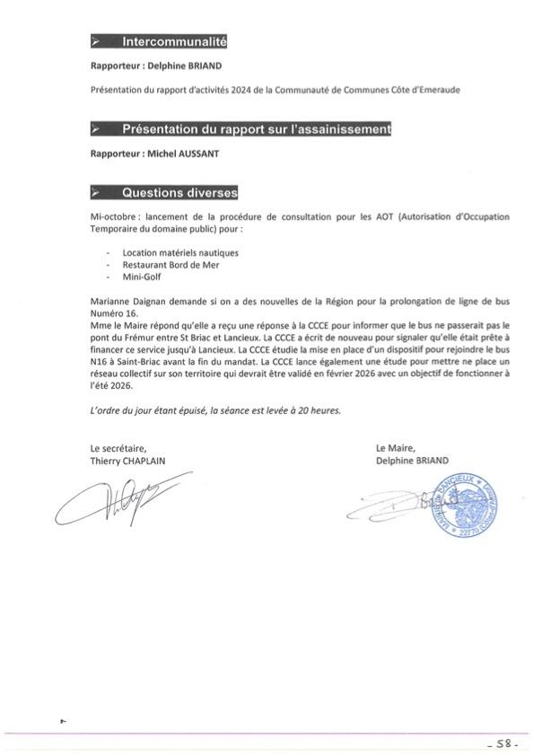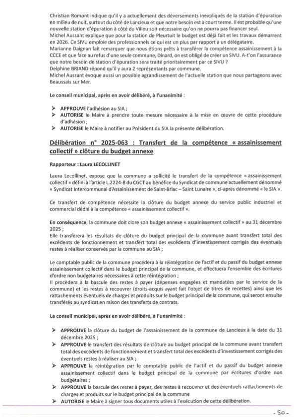 En pièce jointe à lire ou à télécharger les comptes rendus des conseils municipaux de l'année 2024 de la mairie de Lancieux